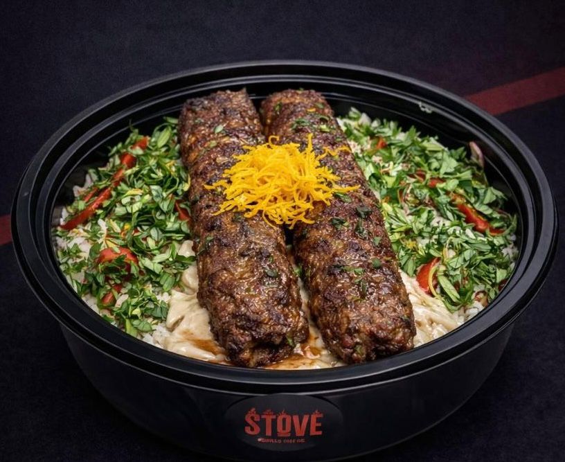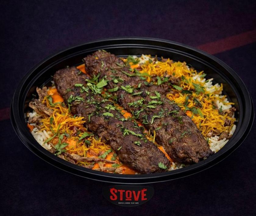 طبق مكون من طبقه من الأرز و الكبـــاب و صوص الطحينــــه